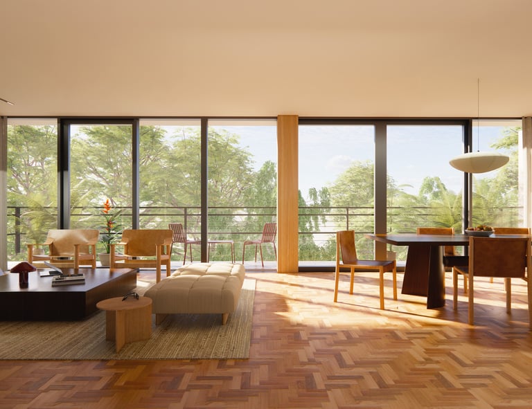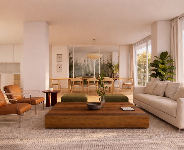 Realistic rendering and animation of interior design projects in Condesa, Mexico City. Architectural project from Estudio Abierto.